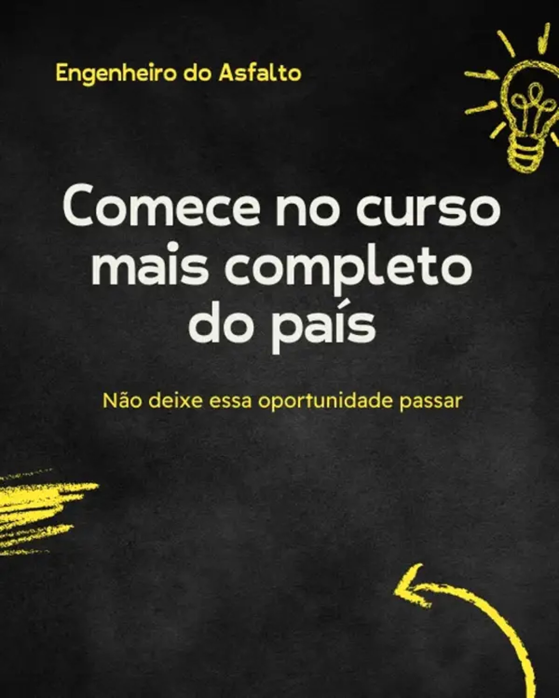 Aviso Legal: O curso "Engenheiro do Asfalto" é uma capacitação profissional em pavimentação e não confere título de Engenheiro Civil ou qualquer graduação em Engenharia. O nome "Engenheiro do Asfalto" é marca do curso. Todos os direitos reservados.